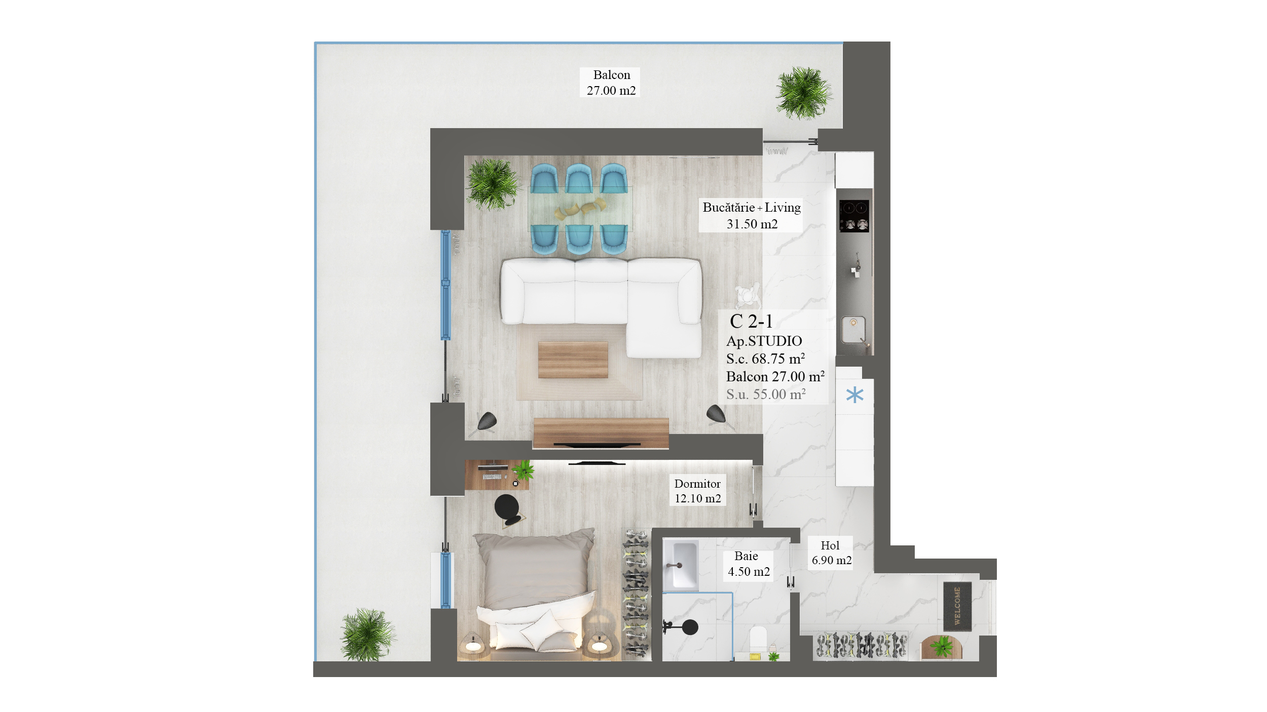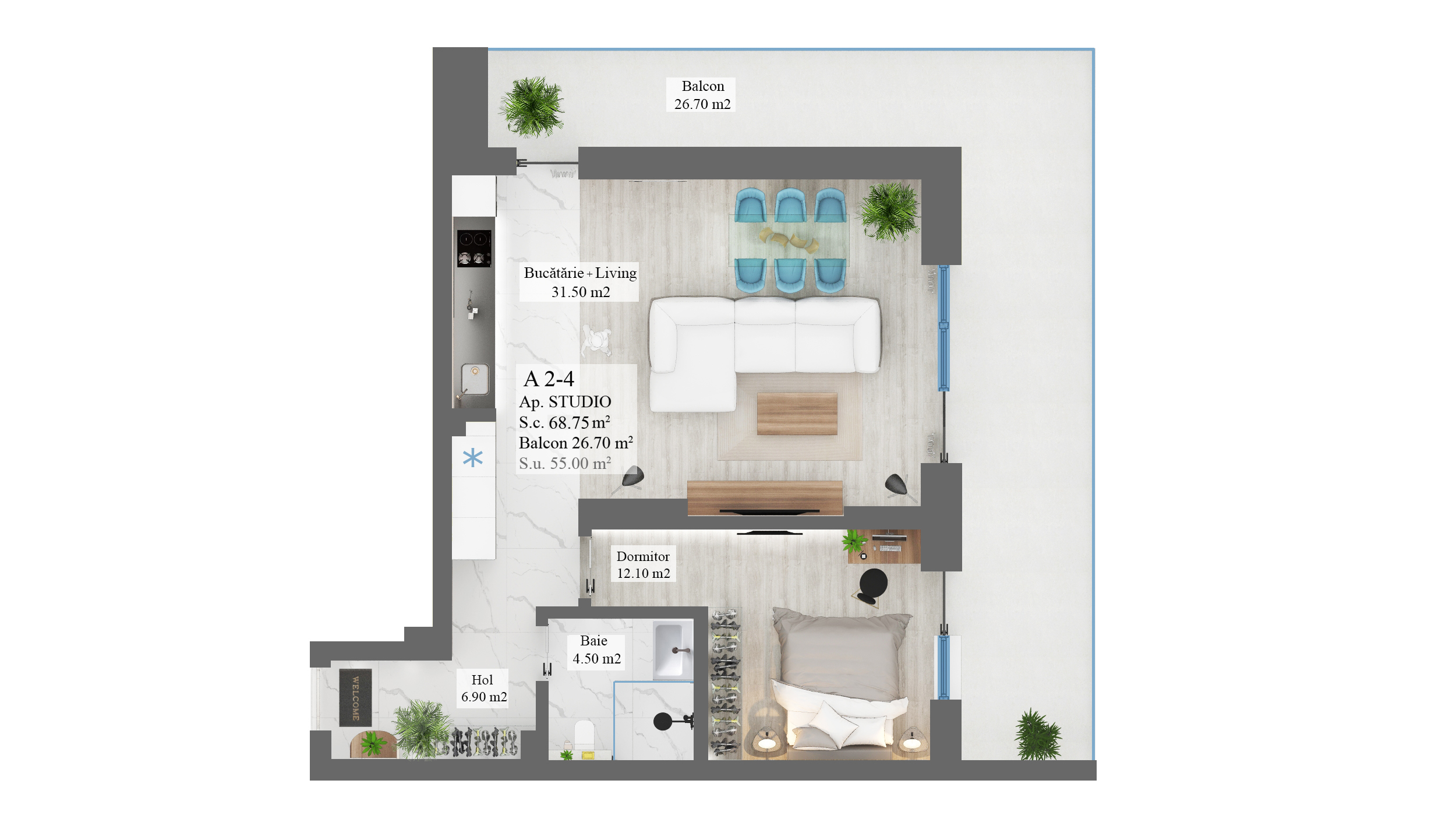 Apartamentele sunt compartimentate inteligent pentru a oferi un nivel ridicat de funcționalitate și utilitate.